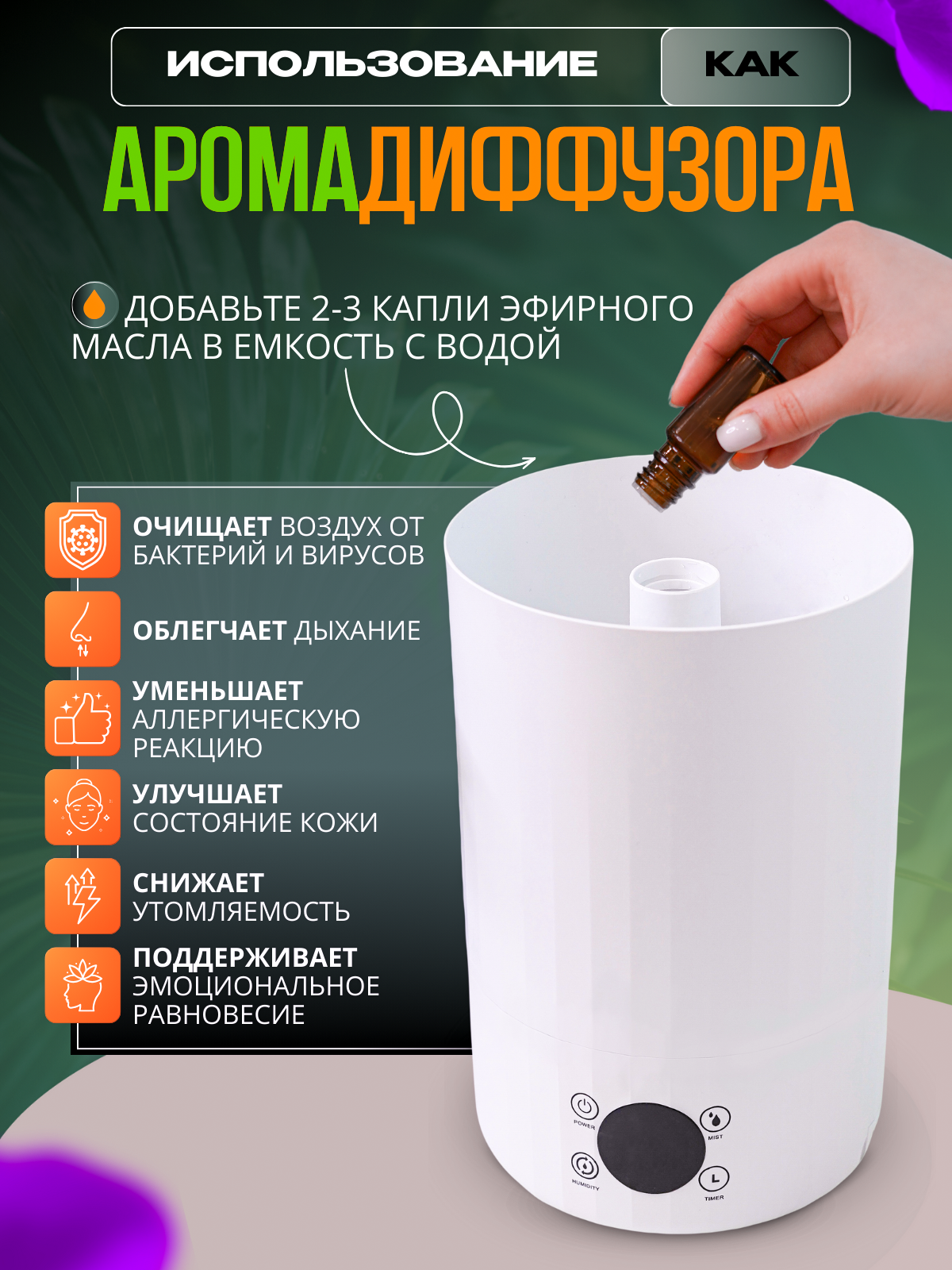 Увлажнитель воздуха с аромадиффузором на 5 литров информация: