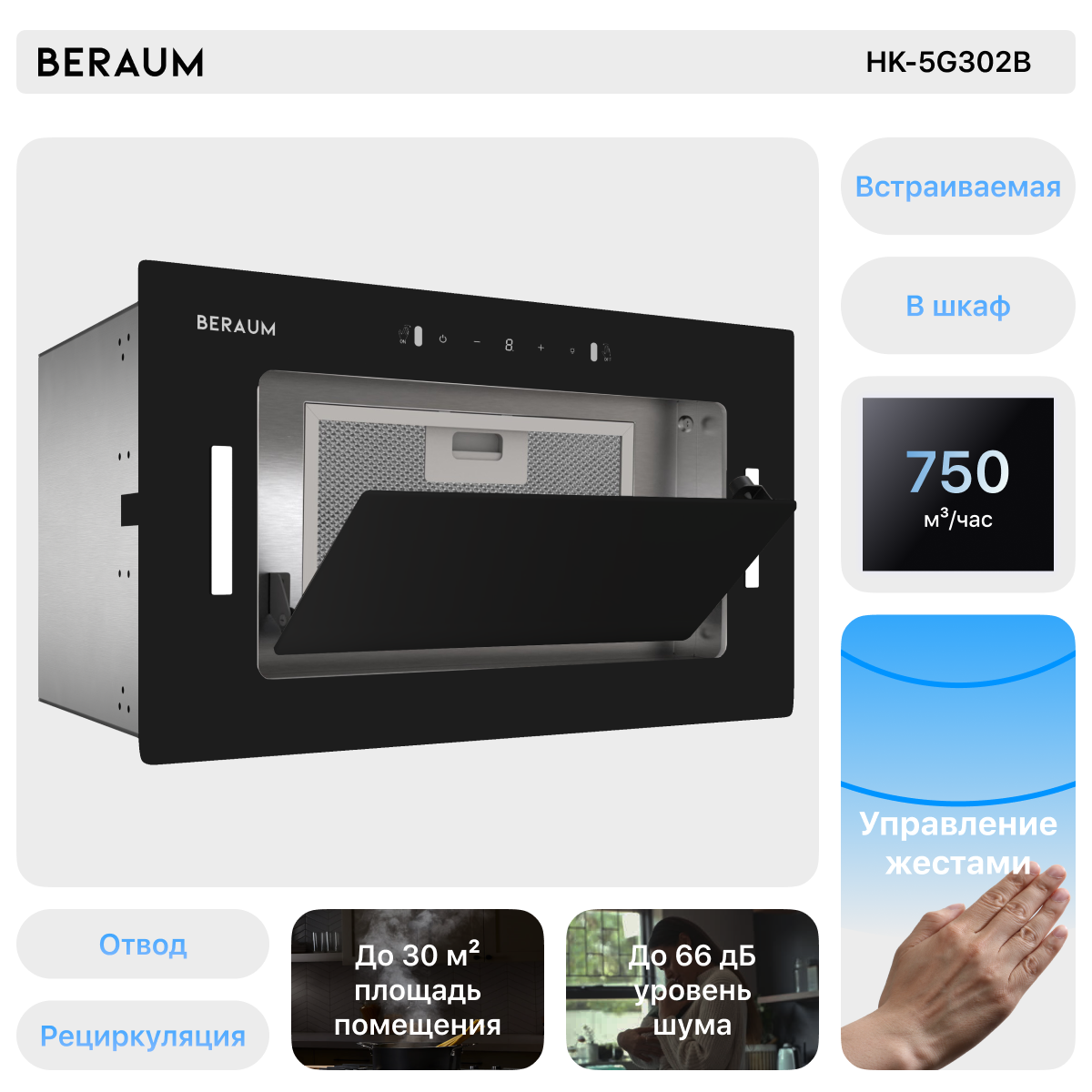 Вытяжка встраиваемая Beraum HK-5G302B с управлением жестами информация: