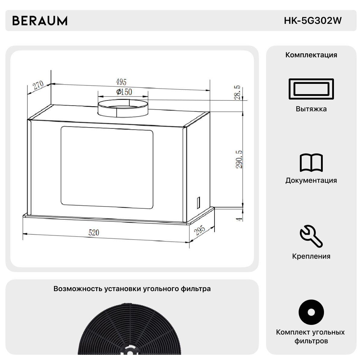 Вытяжка встраиваемая Beraum HK-5G302W с управлением жестами информация: