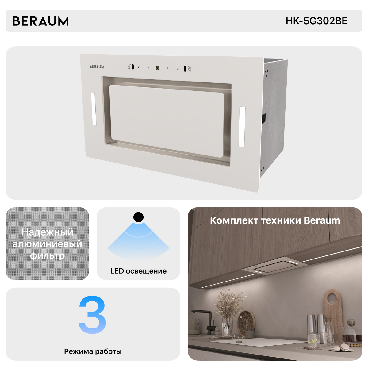 Вытяжка встраиваемая Beraum HK-5G302BE с управлением жестами информация: