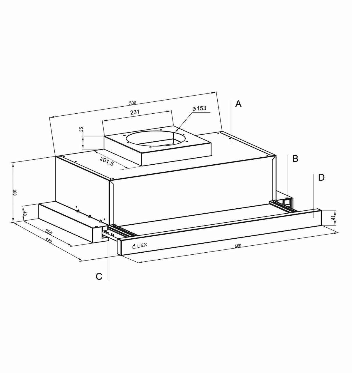 Вытяжка кухонная встраиваемая LEX HYPER 600 Inverter BL, отделка окрашенная сталь, 3 скорости, кнопочное управление, инверторный мотор.