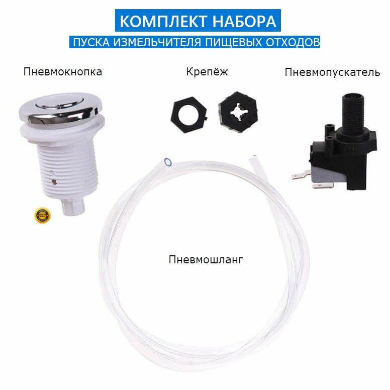 Отзывы на Кнопка пуска измельчителя отходов In-Sink-Erator, полный комплект - кнопка, шланг, пускатель Air switch, цвет белый панель хром глянцевый