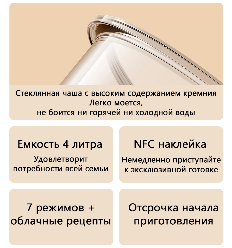 Мультиварка-пароварка Mijia, 4 литра, стекло, 860Вт информация:
