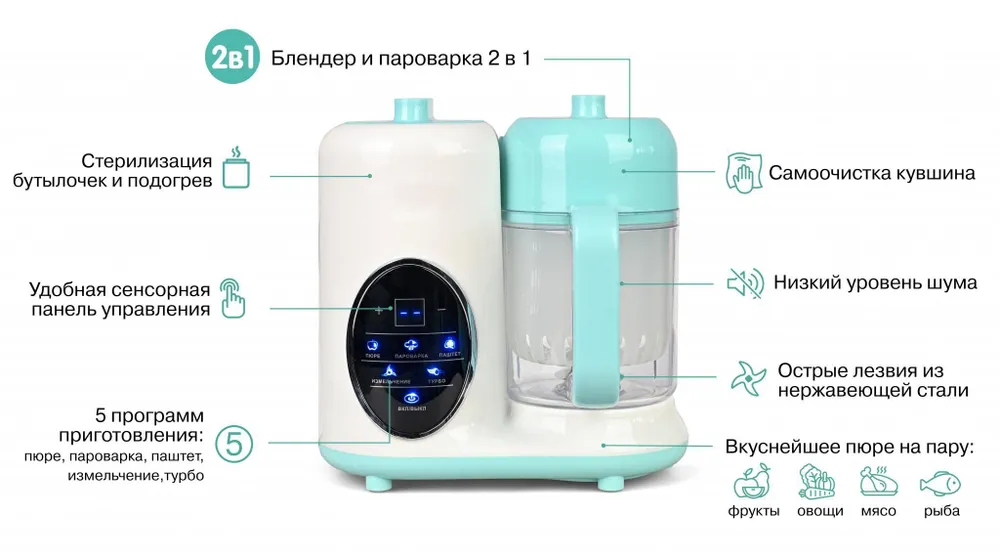 10 цен на Пароварка - блендер , 5 программ, дисплей, таймер, подогрев бутылочек, стерилизация, пароварка блендер для детского питания
