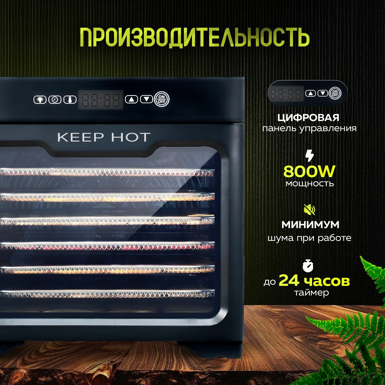 Сушилка для овощей и фруктов, мяса и рыбы Keep Hot, 9 уровней, дегидратор горизонтальный электрический информация: