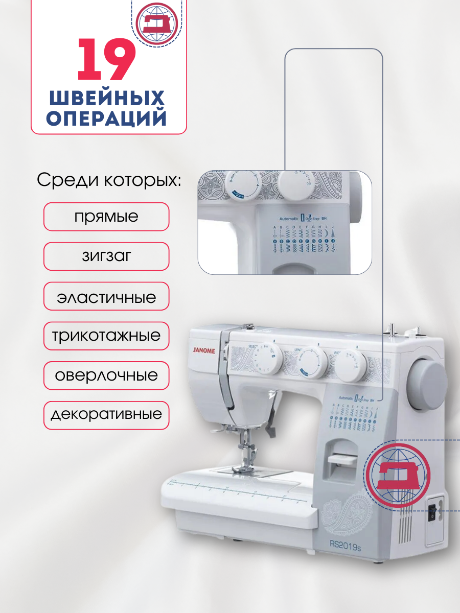 Швейная машина Janome RS2019s, вертикальный челнок ,19 операций информация: