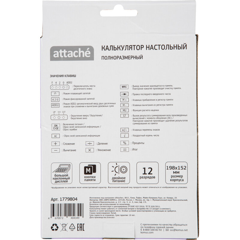 Attache Калькулятор настольный Компактный, 12 разрядный, черный