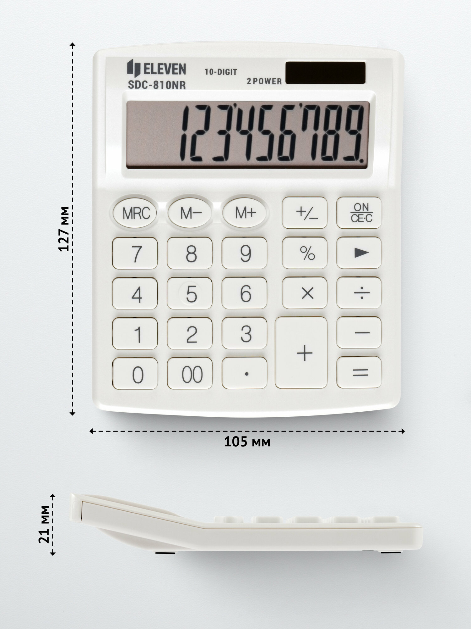 Калькулятор Eleven настольный, 10 разрядов, двойное питание, 127х105х21 мм, белый (SDC-810NR-WH) информация: