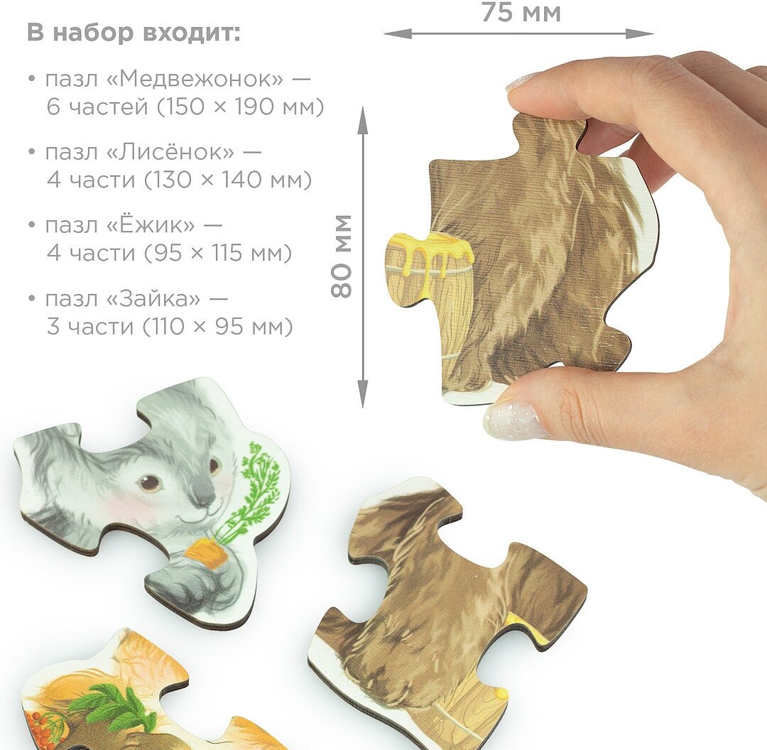 Отзывы на Пазлы для малышей Лесные животные/набор 4 шт/деревянные развивающие игрушки Ulanik
