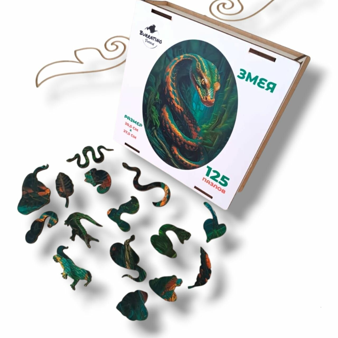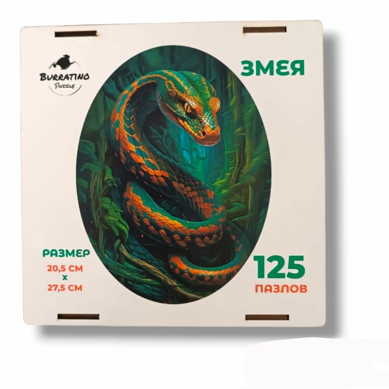 Деревянный фигурный пазл "Змея " в коробке глянец информация: