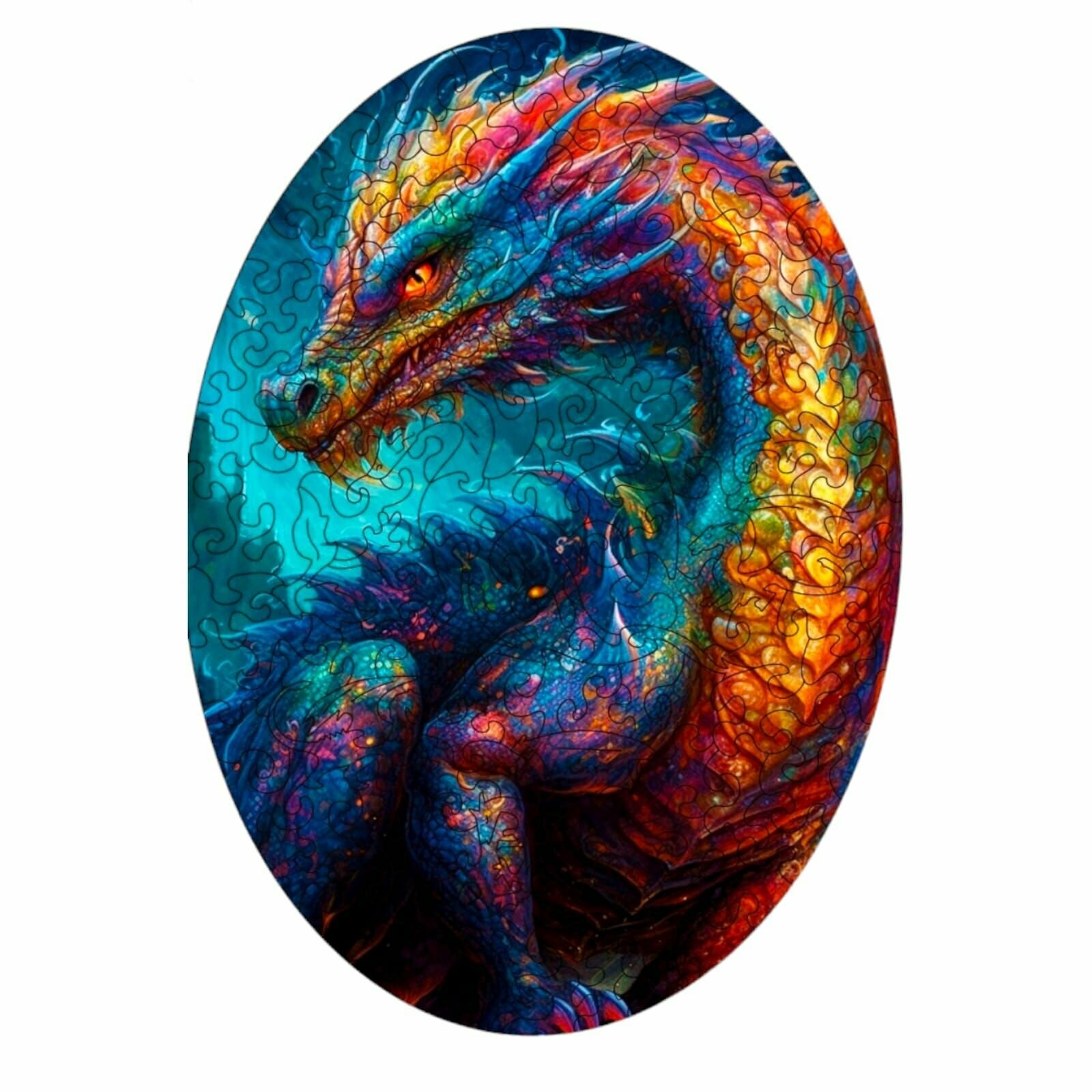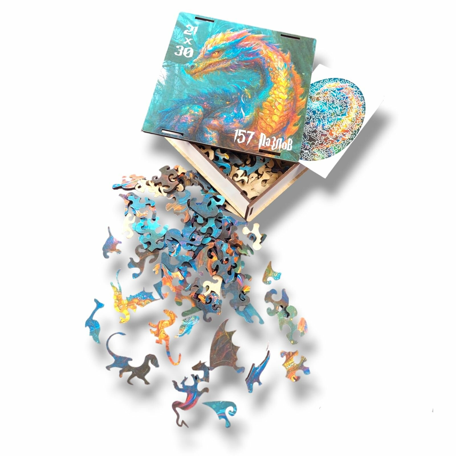 Деревянный фигурный пазл "Дракон" в коробке глянец информация: