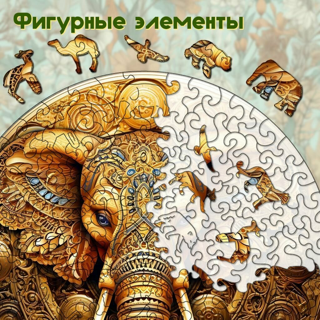 Деревянный пазл BoberBox "Мандала золотой Слон богатства", 220 деталей информация:
