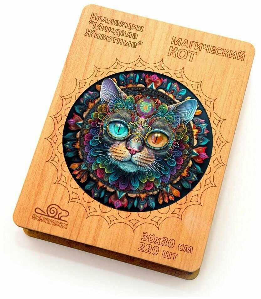 Деревянный пазл BoberBox "Мандала магический Кот", 220 деталей информация: