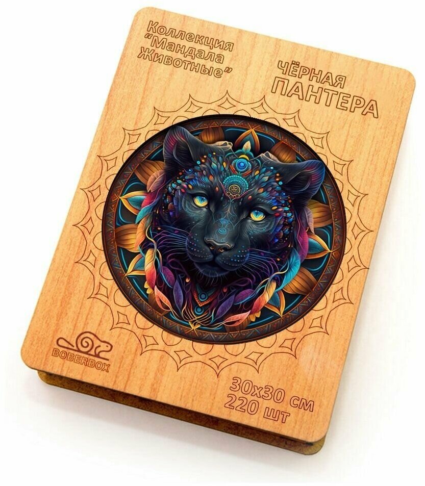 Деревянный пазл BoberBox "Мандала Чёрная Пантера", 220 деталей информация: