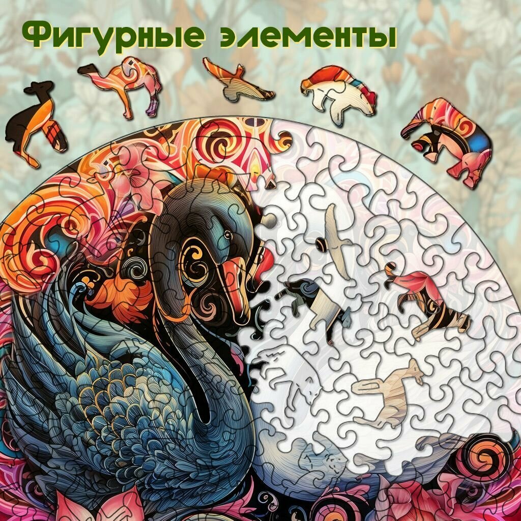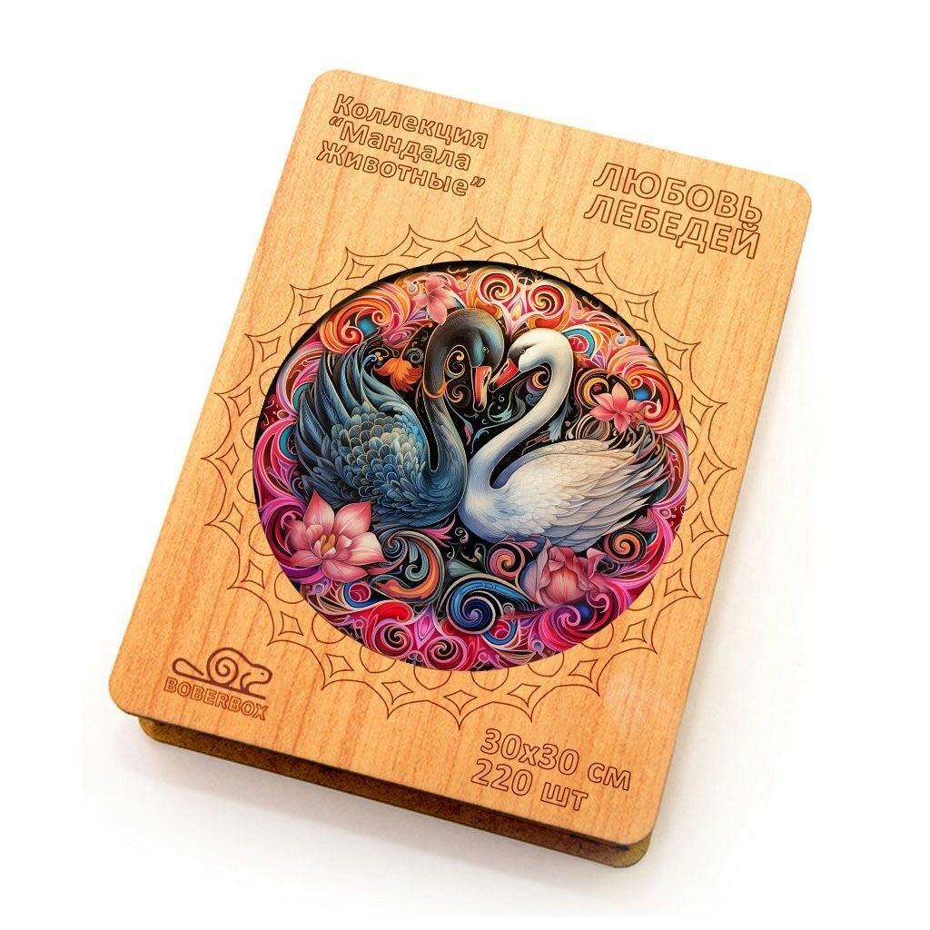 Деревянный пазл BoberBox "Мандала любовь Лебедей", 220 деталей информация: