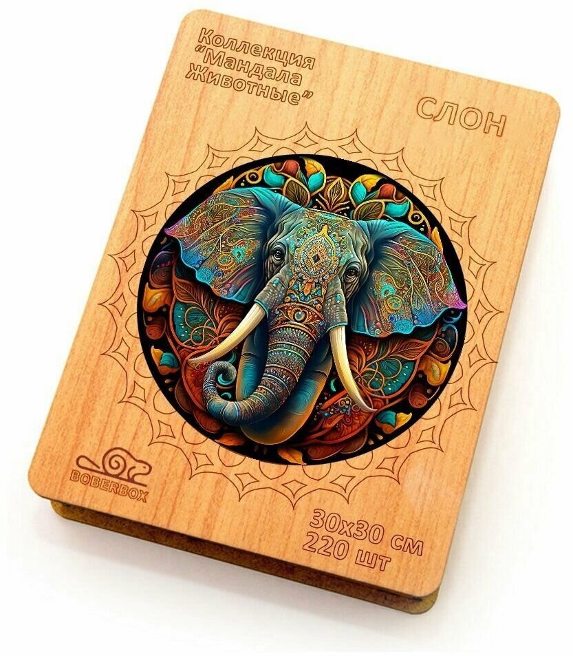 Деревянный пазл BoberBox "Мандала Слон", 220 деталей информация: