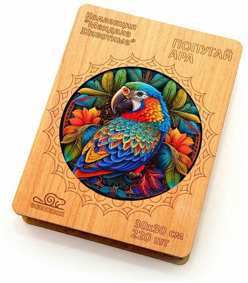 Деревянный пазл BoberBox "Мандала Попугай Ара", 220 деталей информация: