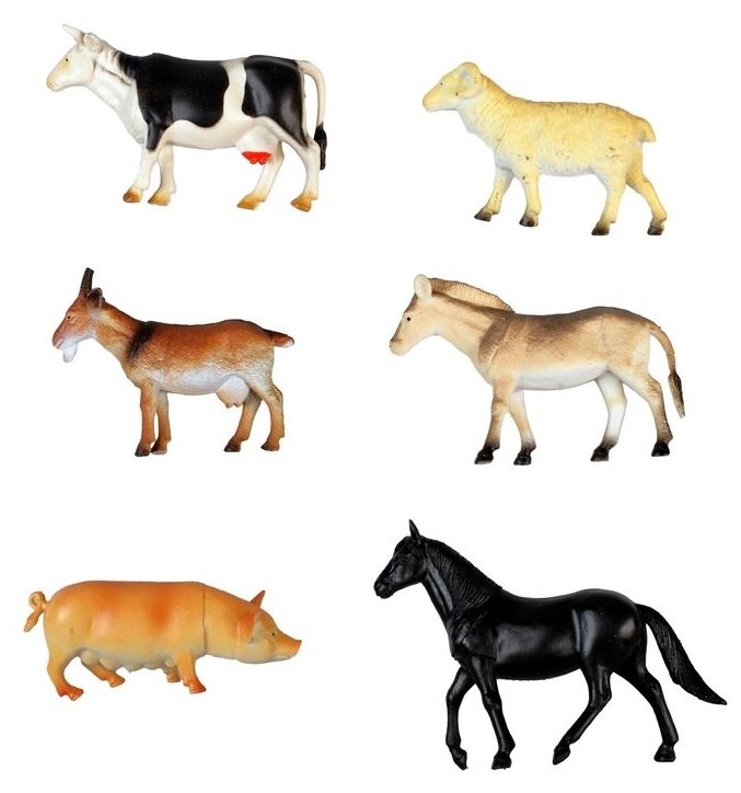 10 цен на 1toy "В мире животных" наб.игр.животных с фермы 6 шт х 15 см. в упаковке ПВХ с хедером