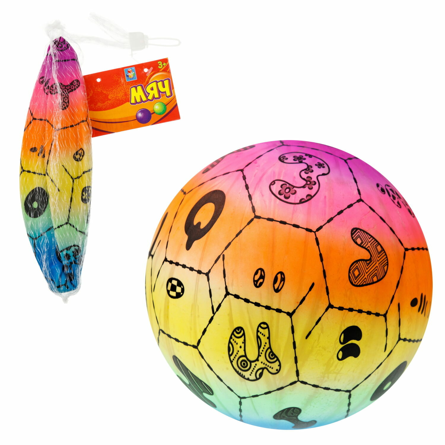 Мяч 1TOY ПВХ 23 см, 60 г, радужный микс 4 вида в ассотрименте информация: