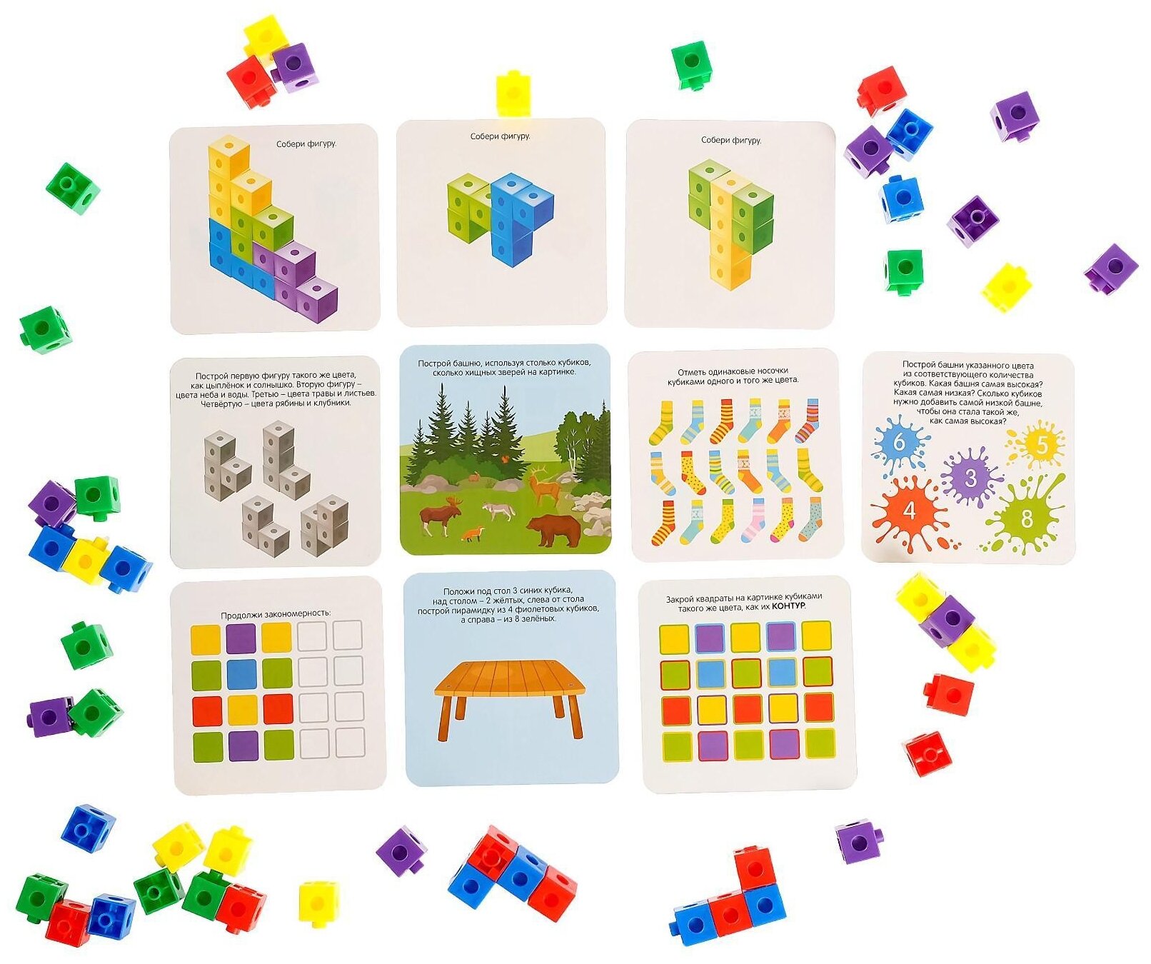 10 цен на Обучающий набор "Кубики-конструктор: Логика и внимание", с заданиями, 50 кубиков, 20 заданий, по методике Монтессори, для детей и малышей
