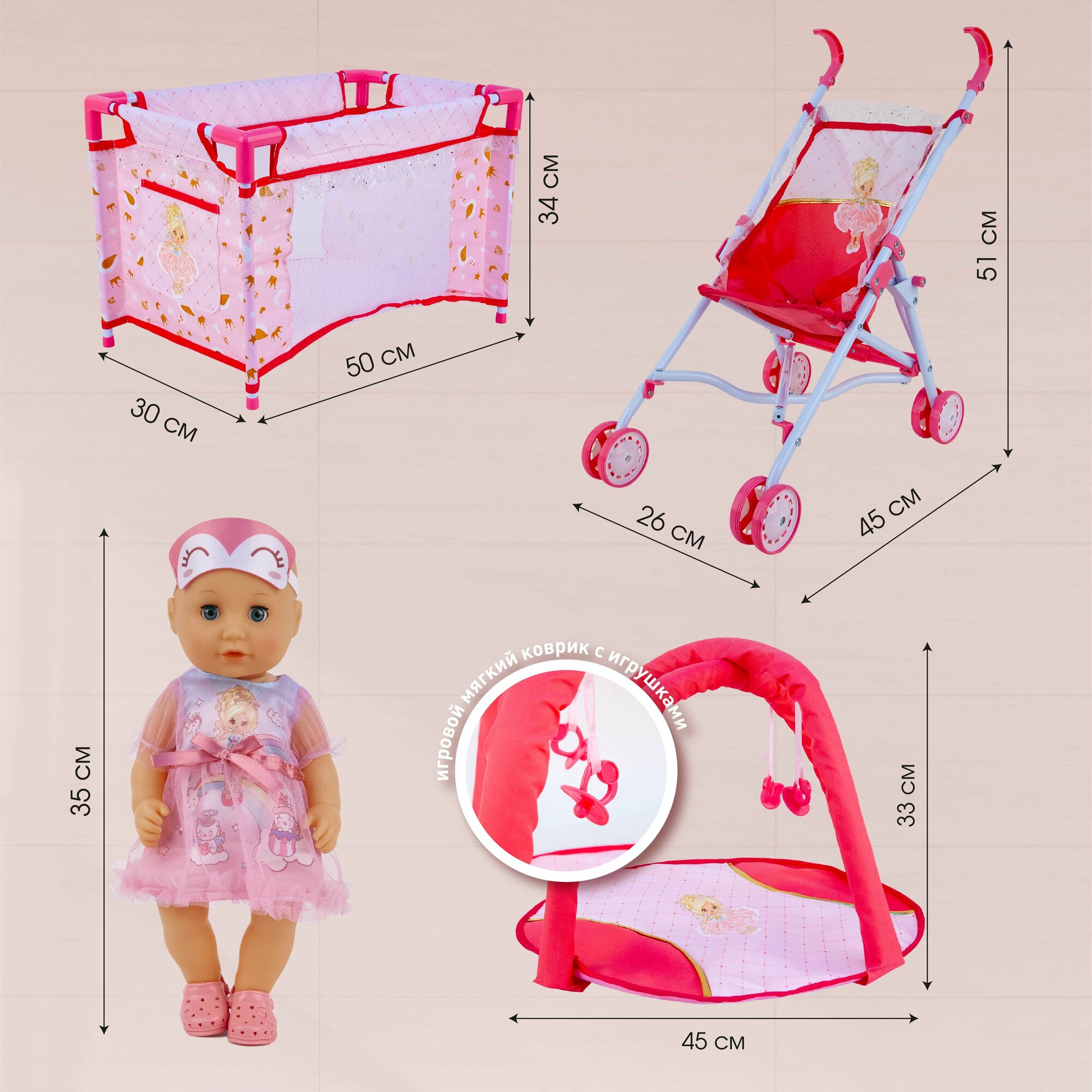 Кукла пупс с коляской, кроваткой, ковриком и аксессуарами информация: