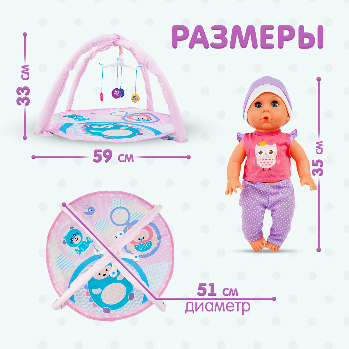 Кукла Пупс 35см с ковриком, мобилем и аксессуарами информация: