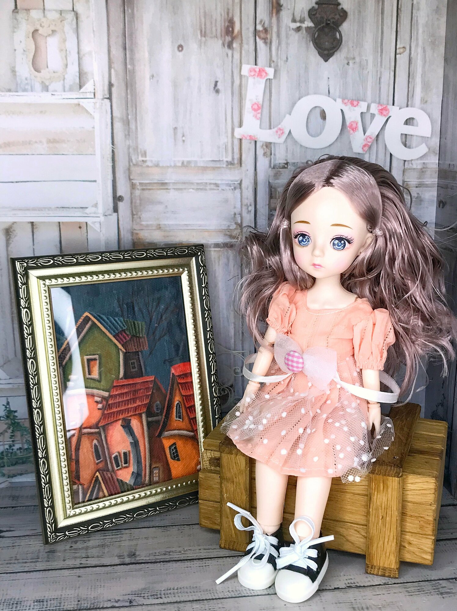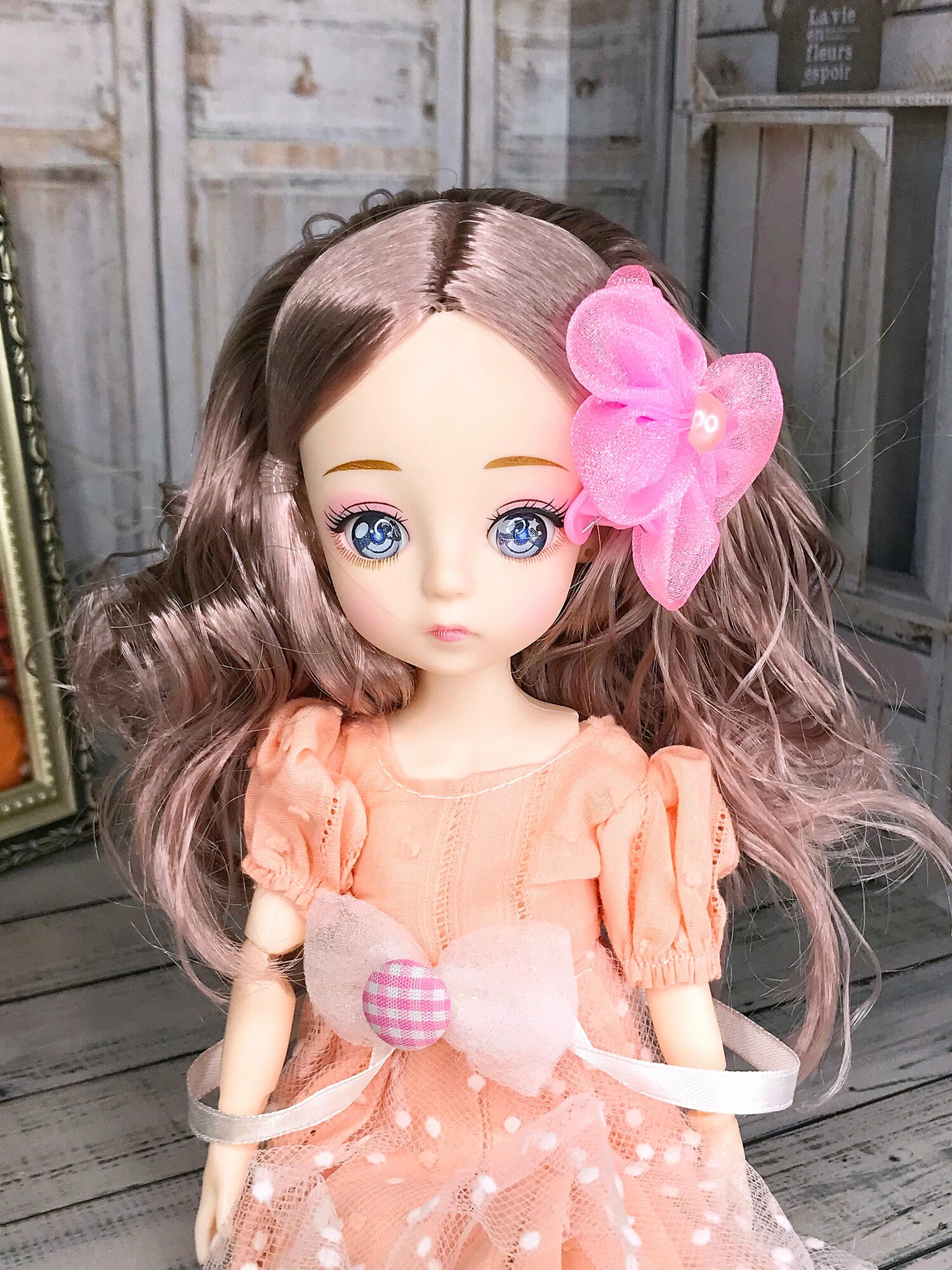 Кукла шарнирная с одеждой и аксессуарами 30 см в персиковом платье информация: