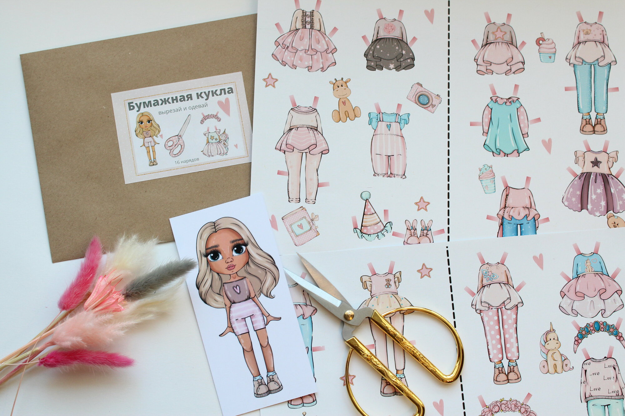 10 цен на Бумажная кукла девочка с одеждой для вырезания. Вырезай и играй.
