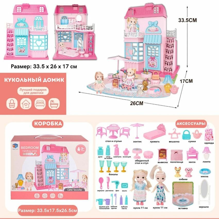 Кукольный домик с мебелью и куклами, подарочный детский игровой набор для девочки информация: