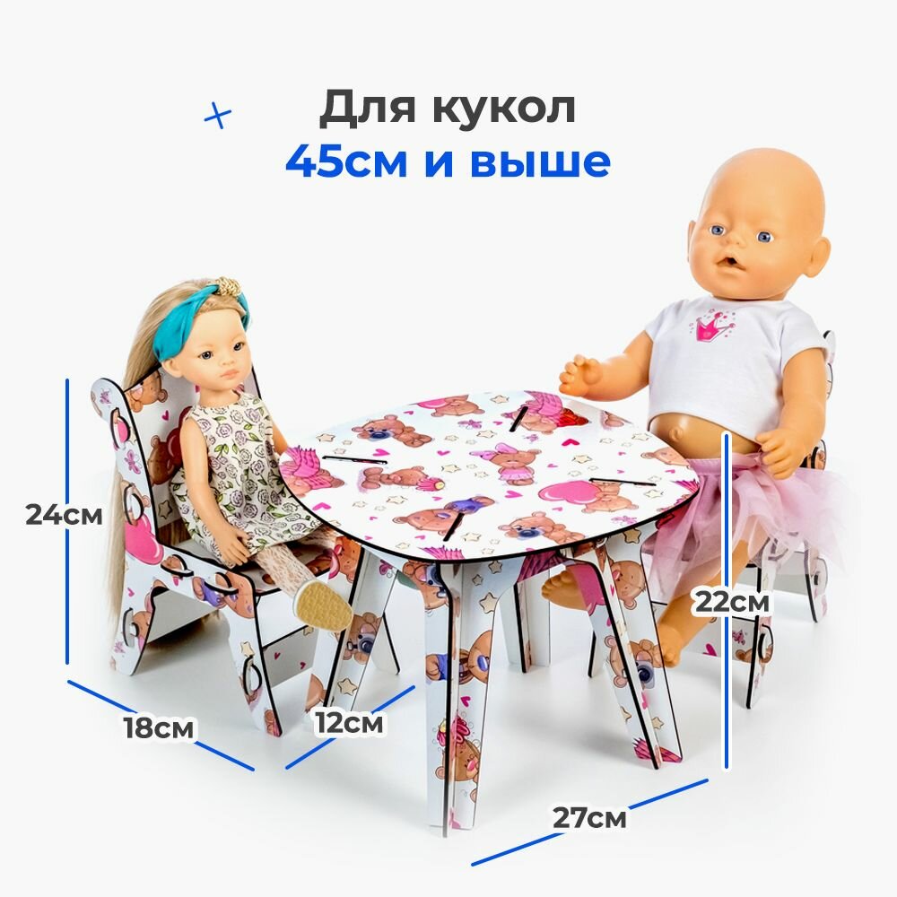 Стол и стулья для кукол до 45 см "Мишки" информация: