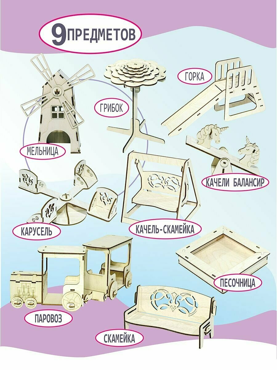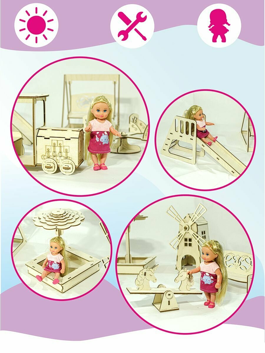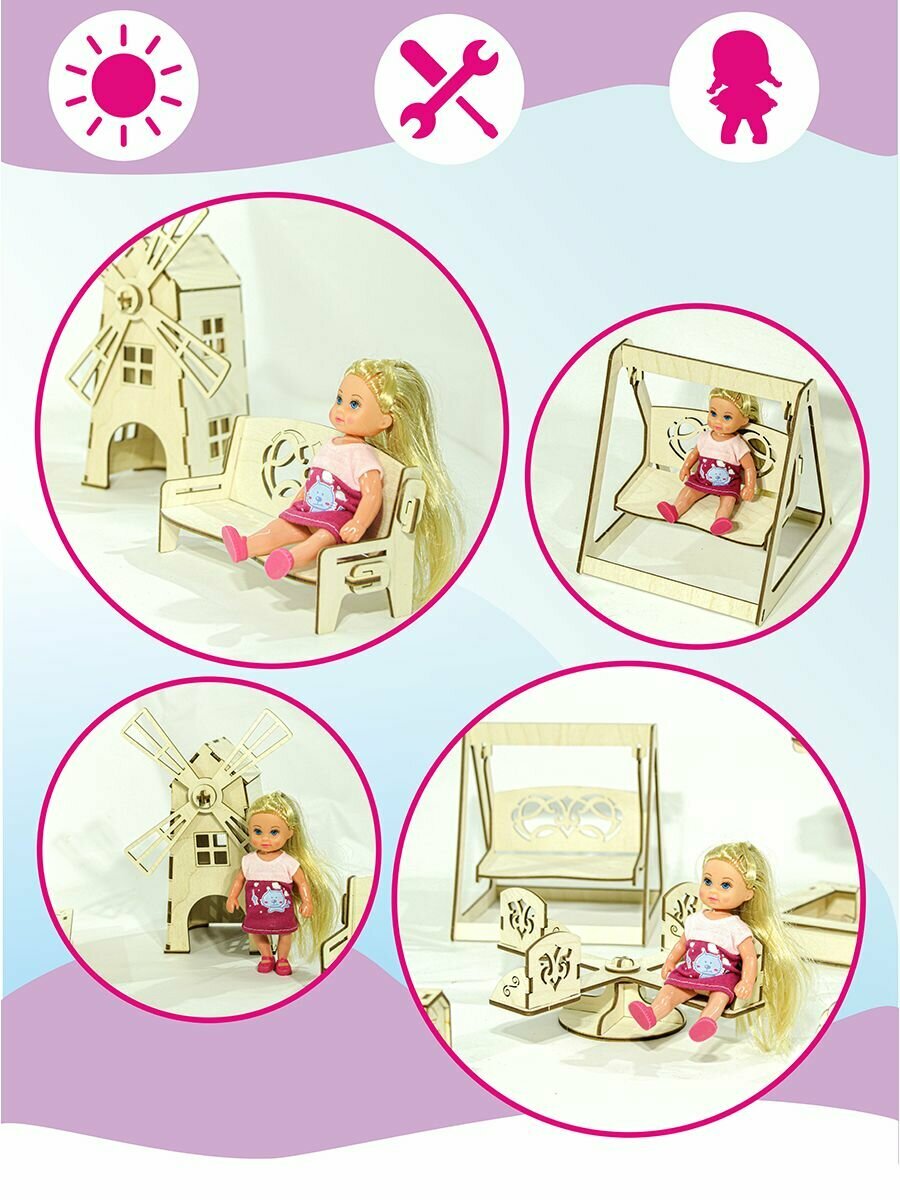 10 цен на Набор мебели "Детская площадка", уличная для кукол до 20 см.