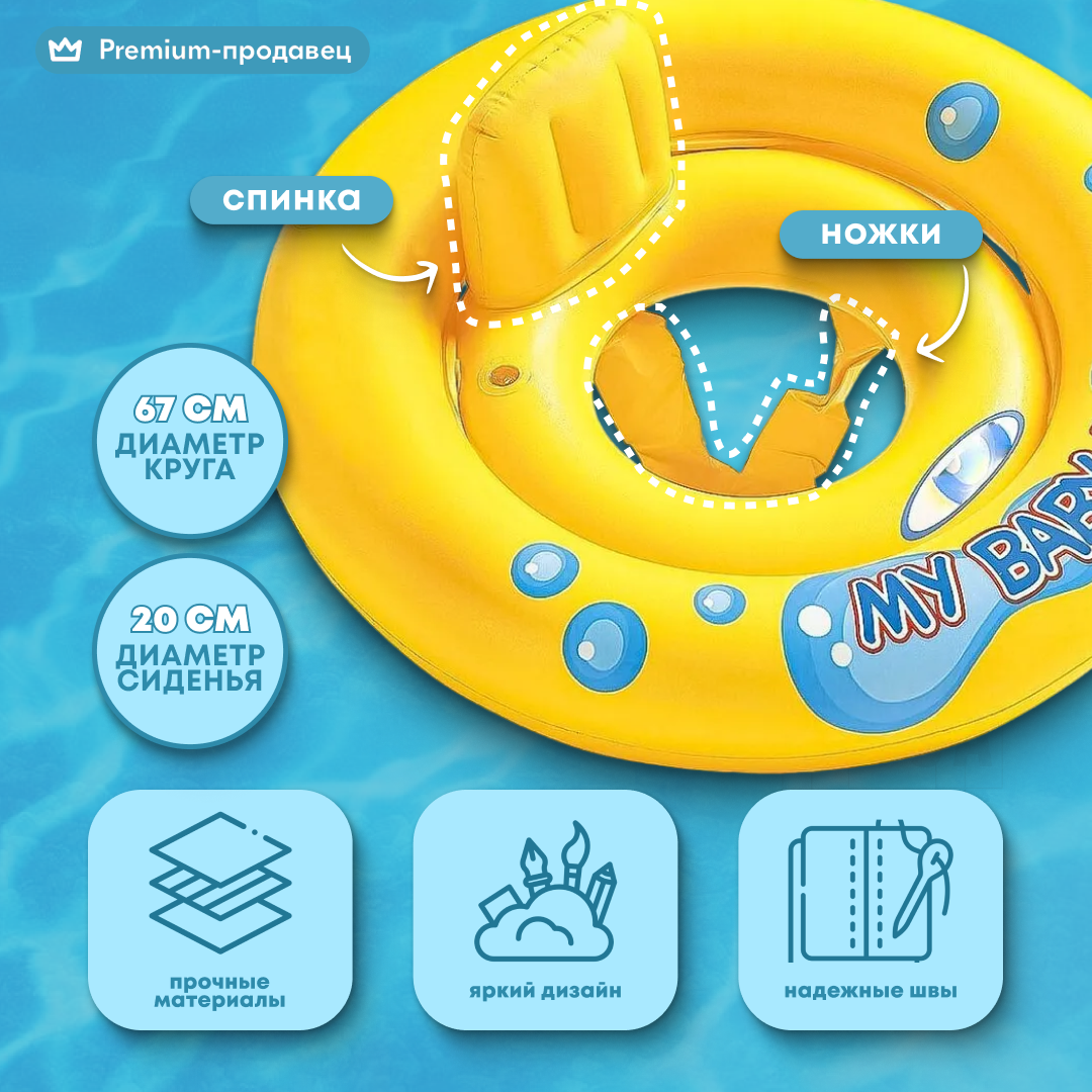 Отзывы на Надувной круг для плавания детский, плавательный круг для малышей от 1 до 3 лет, с ножками и со спинкой, 67 см