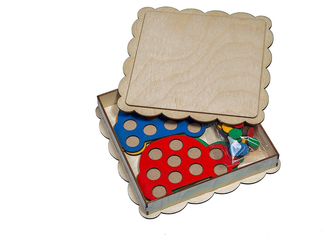 Деревянная мозаика Smile Decor "Супер дом", развивающая игра с карточками-образцами и деревянными вкладышами