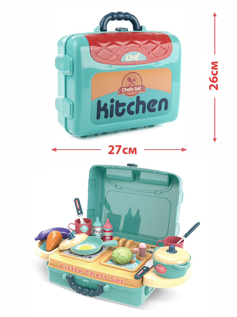 Кухня с набором посуды и продуктами, 21 предмет, в чемодане информация: