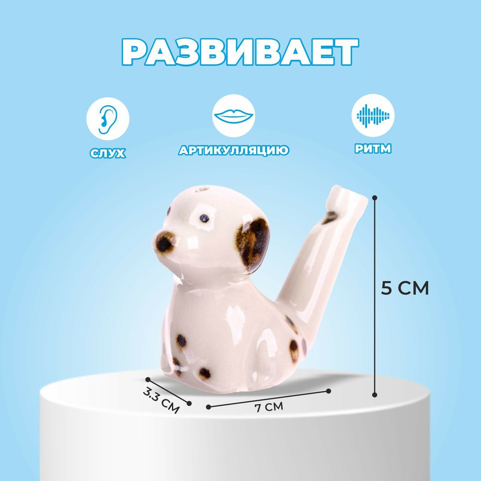 Отзывы на Свистулька керамическая, детский музыкальный инструмент "Далматинец", цвет белый