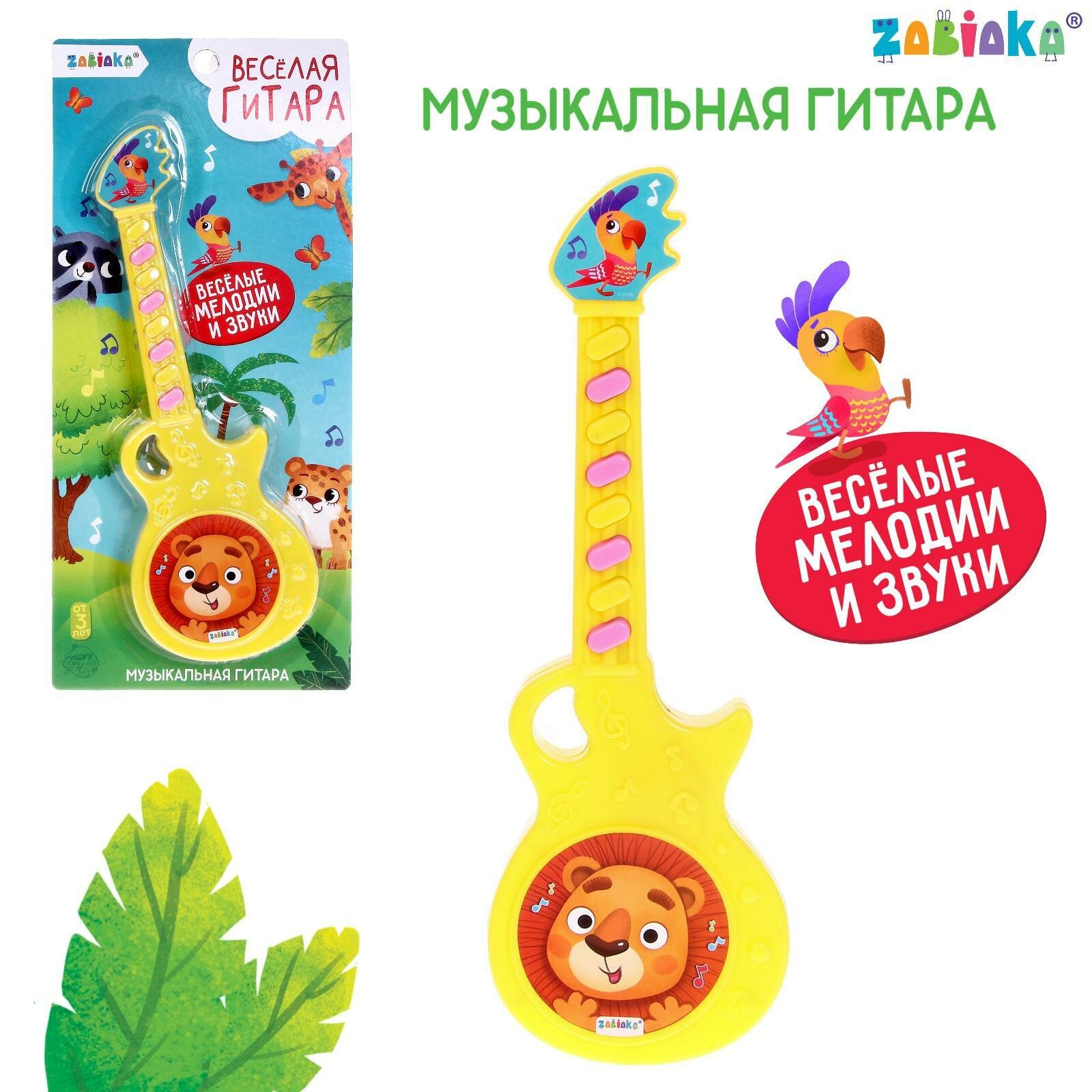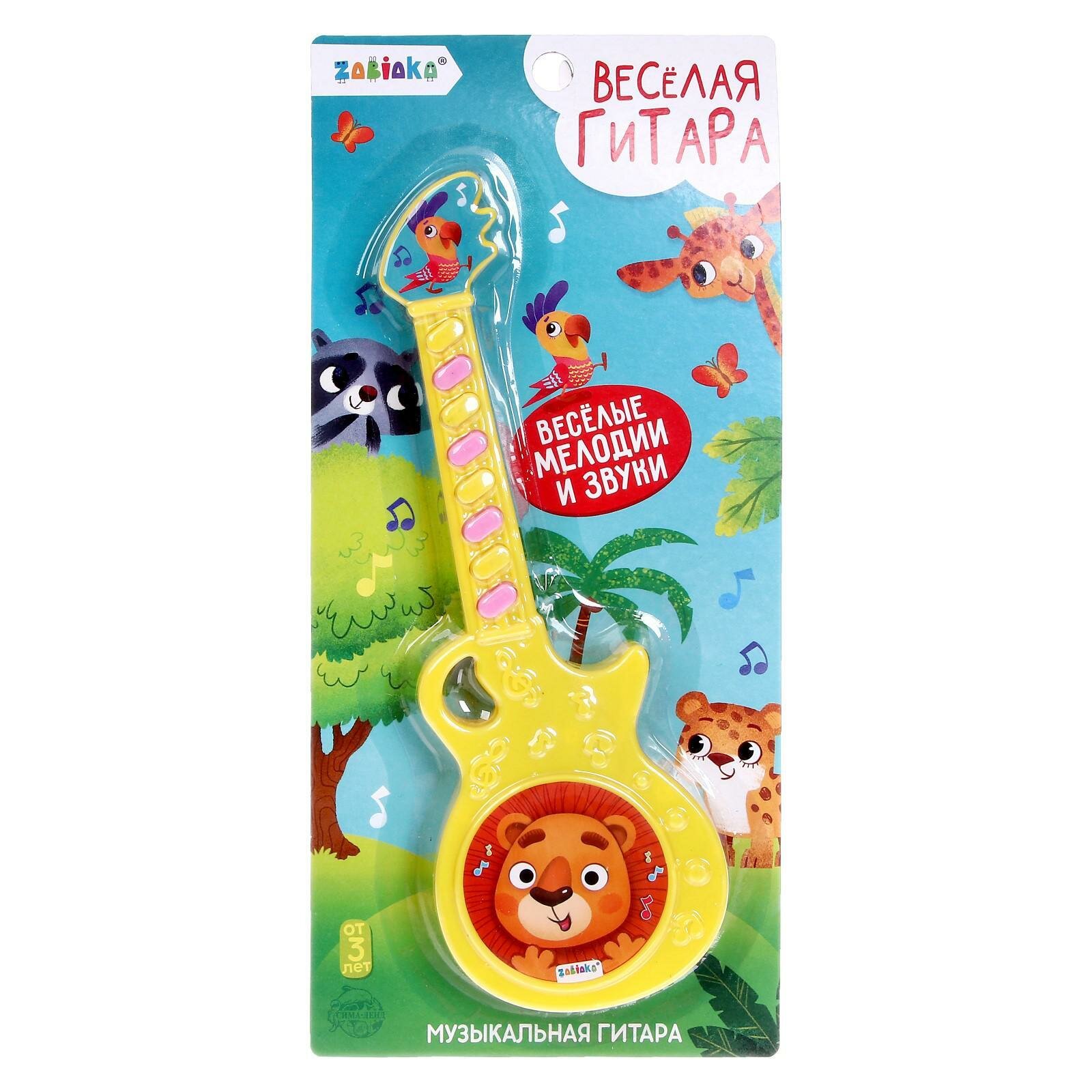 Музыкальная гитара «Весёлые зверята», игрушечная, звук, цвет жёлтый информация: