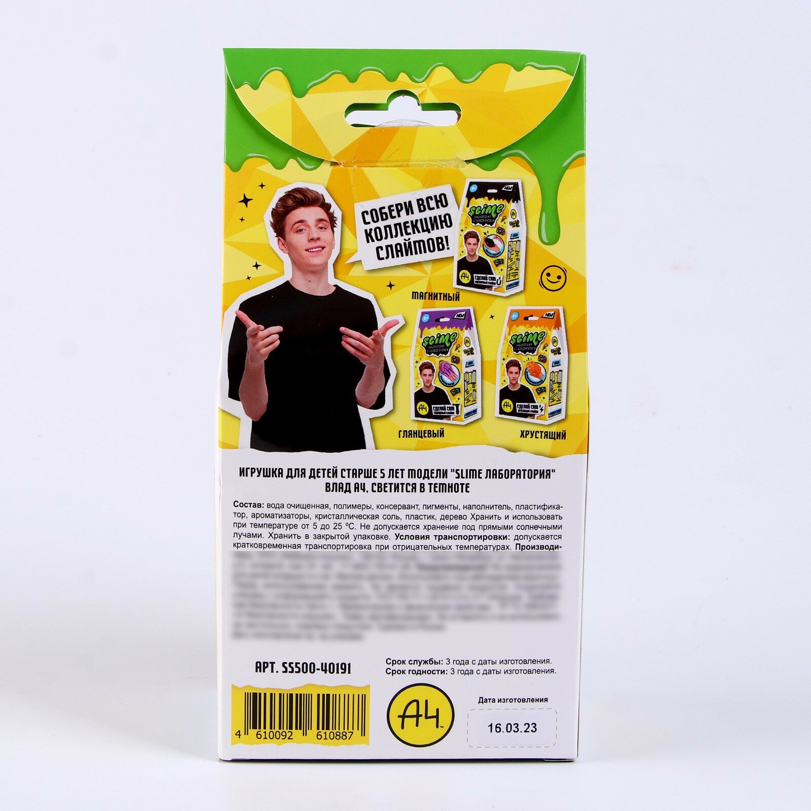 Набор для создания слайма «Slime лаборатория» Влад А4, светится в темноте, 100 г