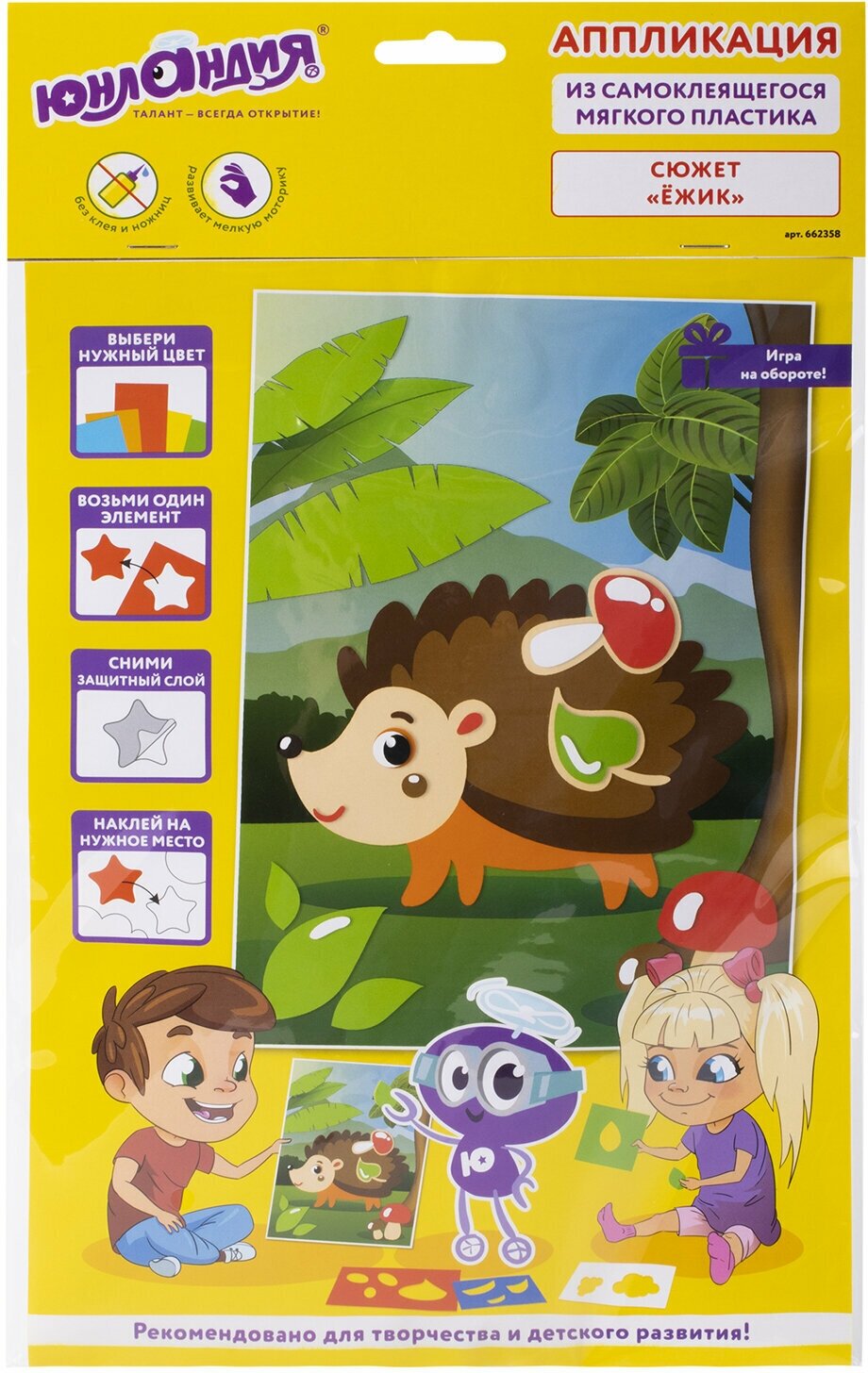Набор для творчества Аппликация из мягкого пластика Ёжик, 21х29 см, Юнландия, 662358 информация: