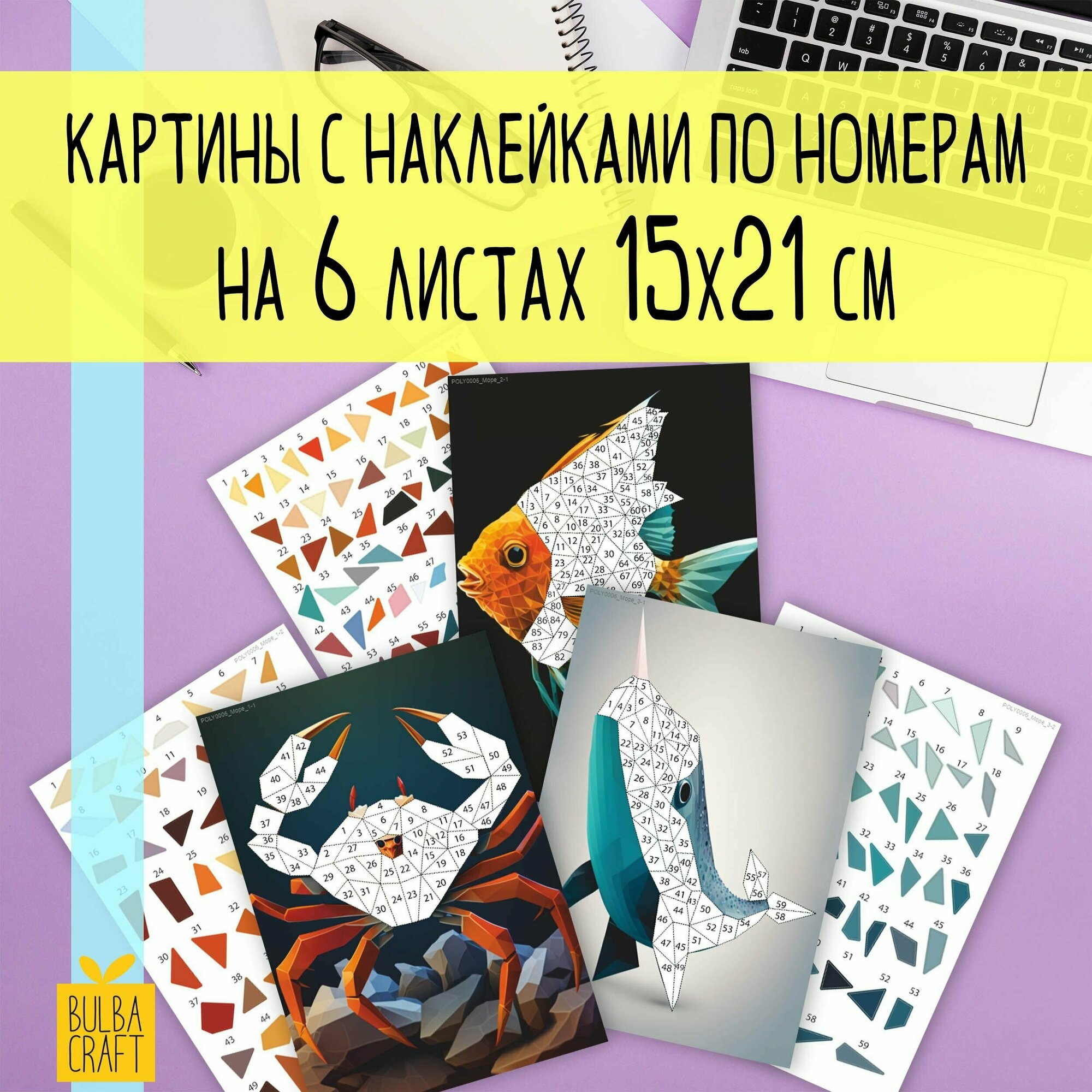 10 цен на Раскраска по номерам, пазл наклейки "Море" (6 листов А5). Набор для творчества, подарка детям и взрослым.