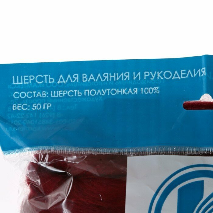 Шерсть для валяния 100% полутонкая шерсть 50 гр (047, бордо) 1577131