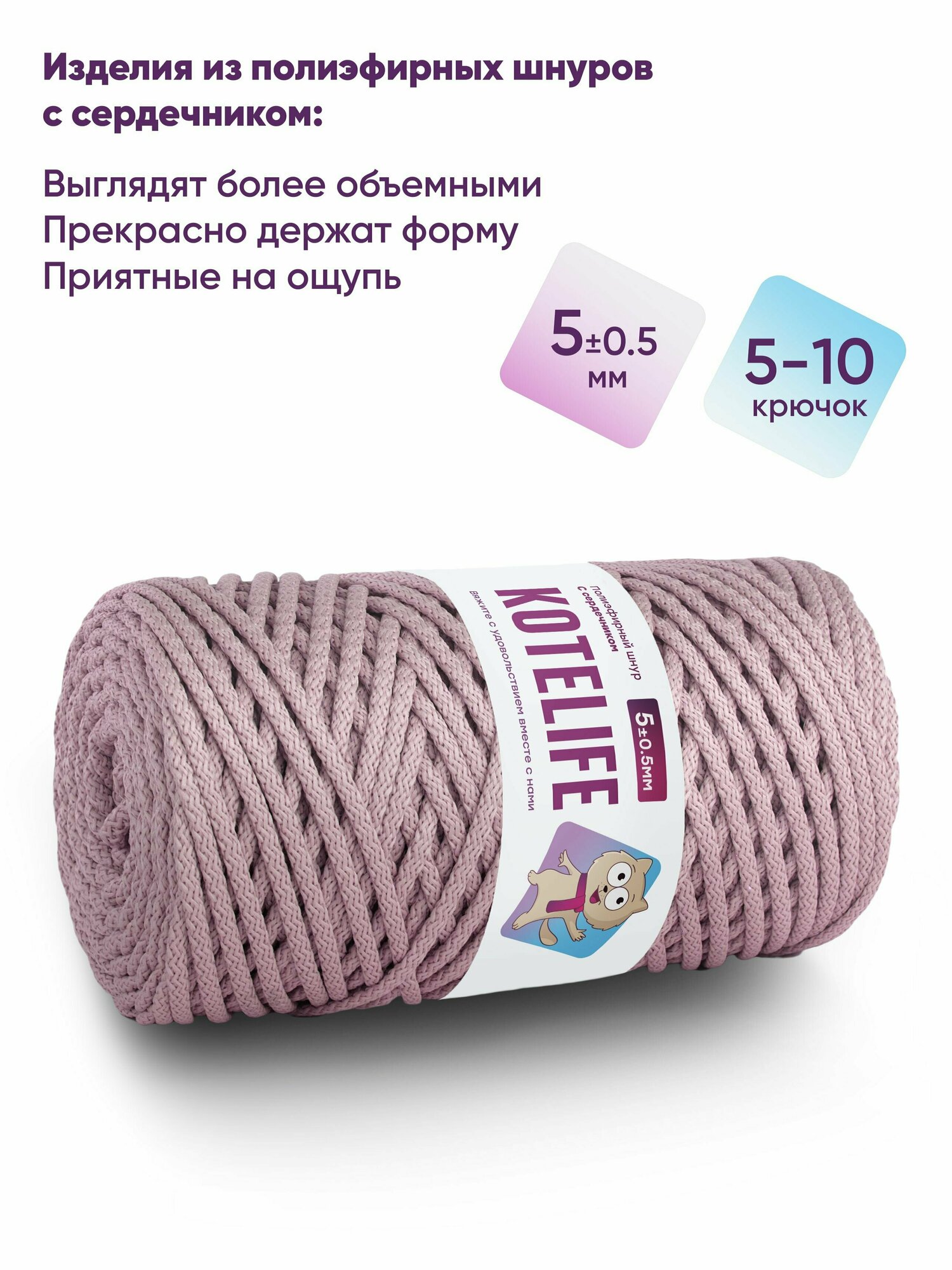 Отзывы на Шнур для вязания, рукоделия с сердечником 5 мм 100м полиэфирный цвет пудра