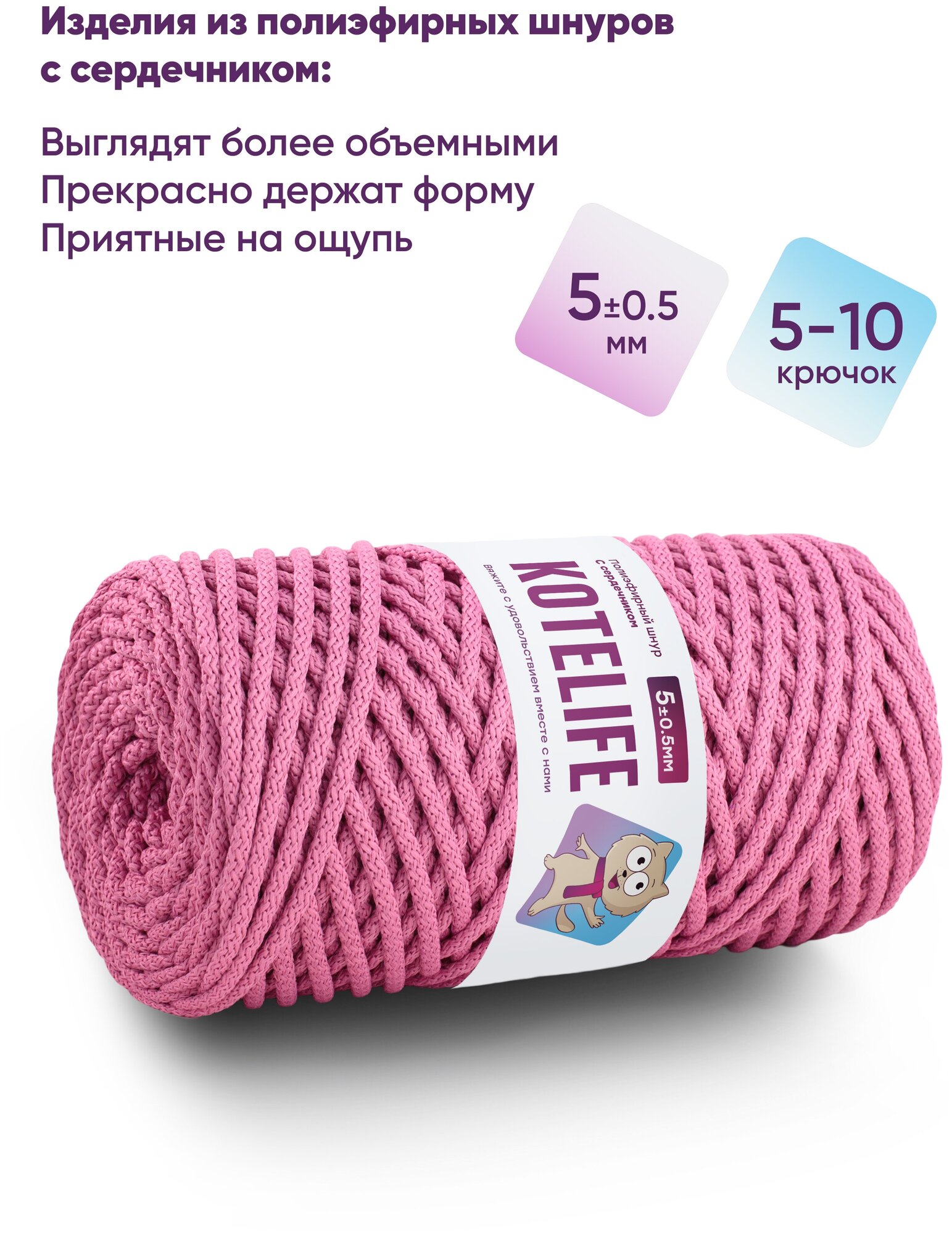 Отзывы на Шнур для вязания, рукоделия с сердечником 5 мм 100м полиэфирный цвет ягодный