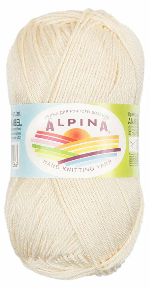 Пряжа ALPINA 'ANABEL' 100% мерсеризованный хлопок 50 г 120 м цвет №172 молочный