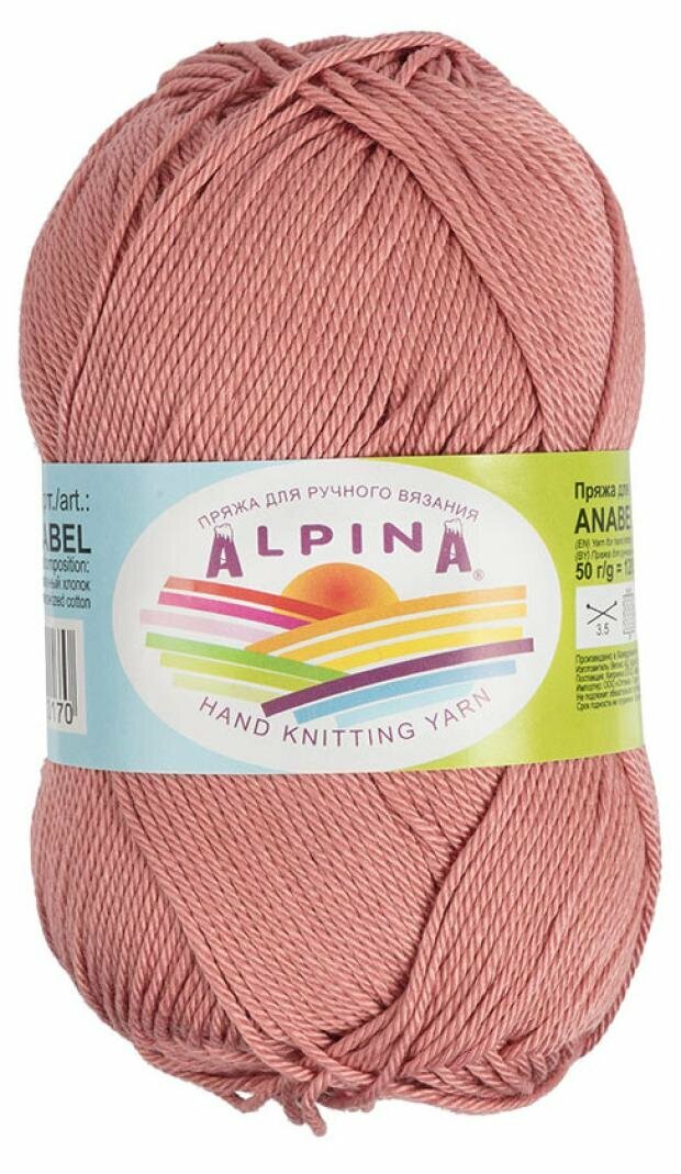 Пряжа ALPINA "ANABEL" 100% мерсеризованный хлопок 10 шт.х50г 120м №028 грязно-розовый информация: