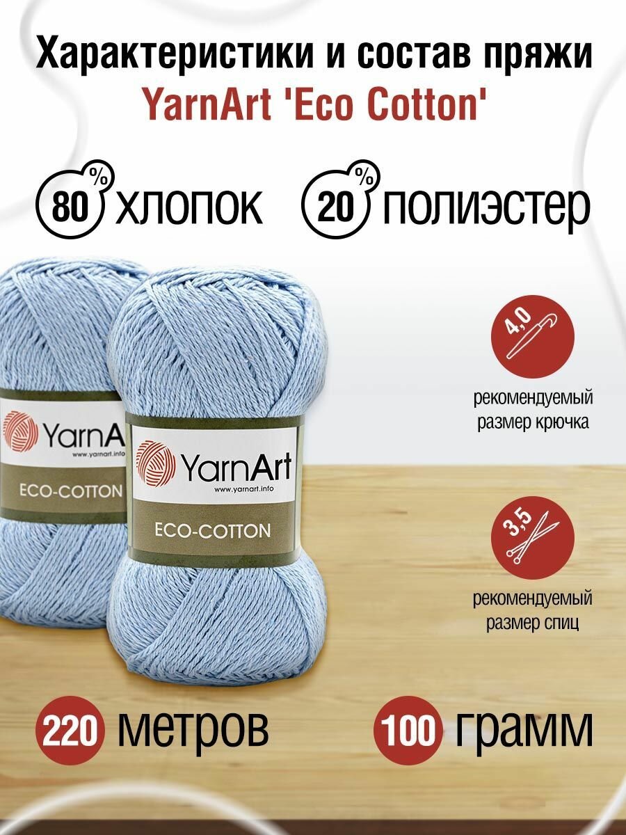 10 цен на Пряжа для вязания YarnArt 'Eco Cotton', 100г, 220м (85% хлопок, 15% полиэстер) (770 голубой), 5 мотков