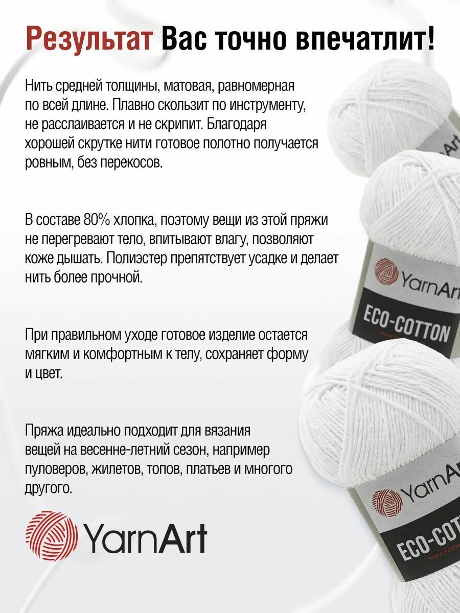 Отзывы на Пряжа YarnArt Eco Cotton комфортная для летних вещей 100 г 220 м 760 белый 5 мотков