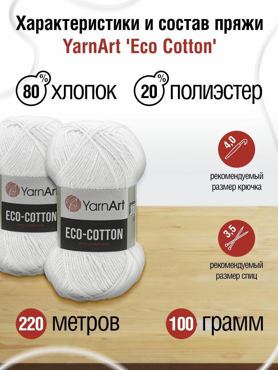 Пряжа YarnArt Eco Cotton комфортная для летних вещей 100 г 220 м 760 белый 5 мотков информация: