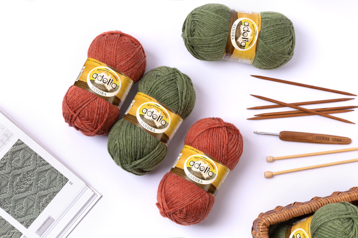 Отзывы на Пряжа ADELIA "SANDRA" 50% шерсть, 50% акрил 50 г 90 м №05 т.оливковый