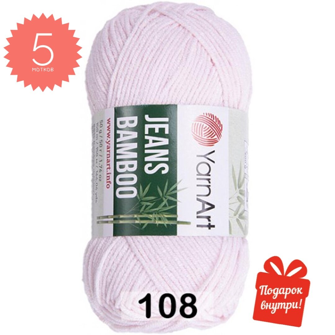 10 цен на Пряжа для вязания Jeans bamboo YarnArt, 108 светло-розовый, 50℅ бамбук, 50℅ акрил, 5 мотков