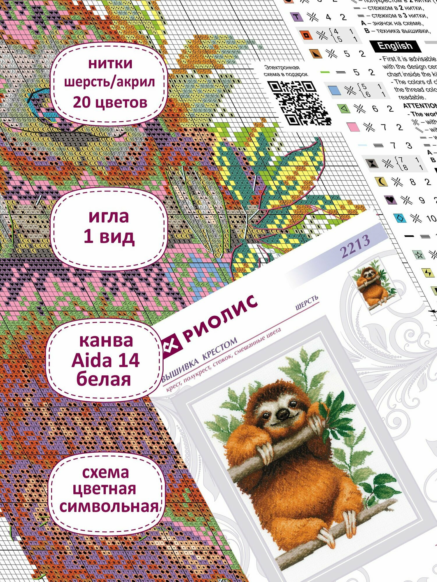Набор для вышивания крестом Риолис, вышивка крестиком "Ленивец", 21*30см, 2213 информация: